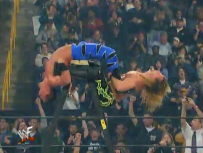 Benoit and Jericho had been feuding for months leading up to this match. Their feud started almost a year earlier at WrestleMania 2000 and since then both men have traded big wins over each other. Their rivalry reached a fever pitch earlier in January 2001 when Benoit retained his title against Jericho following interference from Benoit’s buddies Perry Saturn and Dean Malenko. Soon after, Jericho teamed with the Hardyz to defeat Benoit, Saturn and Malenko, and pinned Benoit in this match to earn a title shot. He hot to choose the match stipulation and picked a ladder match. It’s simple storytelling grounded in straightforward logic, but it makes sense. And people were delighted to see it because these were two of the most exciting rising stars in WWF/E at the time.