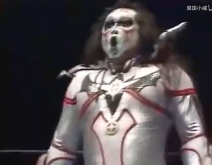 As predicted, Liger was out of his element from the very beginning. He tried to wrestle purely as he always did but Muta just brushed him off, both figuratively and literally. For the first half of the match, Liger couldn’t really mount any sustained offense. He slowed Muta down or made him flinch but he didn’t hurt Muta. Conversely, Muta showed his heavyweight advantage by hitting fewer moves but those moves did more damage. Muta toyed with Liger and no-sold what few moves Liger could land on such a bigger opponent. Worse, Muta’s psychological games and unchained violence amplified the urgency for Liger. He couldn’t land key moves, and what little he did land had almost no effect. Meanwhile, his own body wasn’t holding up against Muta offense. And so, Jushin Liger was forced to fight fire with fire. He led Muta desecrate his sacred mask, thinking it would demotivate him. But that ended up having the opposite effect: it awakened the demon hiding beneath, Kishin Liger.