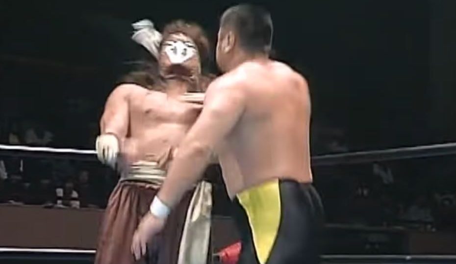 All Japan’s annual two-man tag tournament was the highlight of the year for many fans. In 1997, the company managed to get a bit more outside talent than before. Though they often got gaijins from the US, it was rare for wrestler from other Japanese companies to compete in the WSTDL. But there were two guys that Baba considered big enough stars to share the ring with his wrestlers: Hayabusa and Shinzaki. Shinzaki was ‘Hakushi’ in WWF/E and is remembered for having some great matches with other in-ring workhorses like Bret Hart. As for Hayabusa, he never competed in WWE or WCW but he still became highly influential. He worked ECW at least once and was a pioneer in the hardcore style that preceded ECW becoming what it was. Hayabusa was also an innovative wrestler for coming up with some crazy spots and amazing moves. Specifically, the 450 Splash, the Phoenix Splash, and the Falcon Arrow, were all created by Hayabusa. And many wrestlers still active today – including PAC, Chris Jericho, and Seth Rollins –tribute, borrow, or have stolen from Hayabusa in some way.
