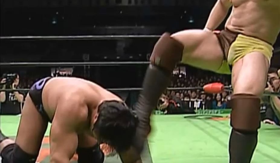That said, I really enjoyed the action and story in this match. KENTA needed to be as d**kish as possible to win so he hit Kobashi exceptionally hard and landed a punt so vicious it looked way worse than anything Randy Orton ever landed. And when Kobashi fought through that, KENTA did the next best thing: he attacked his lariat arm to weaken the effectiveness of that move. And since Kobashi relied on that right arm more than ever at this point in his career, his inability to maintain control for a long time allowed KENTA to out-play him for most of the match.