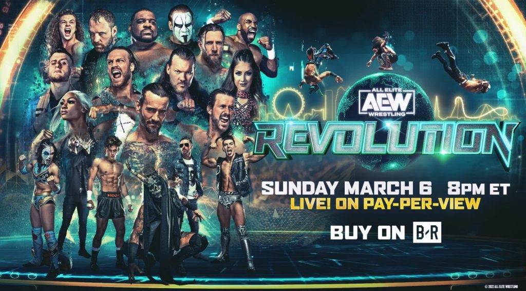 The first AEW pay-per-view of 2022 is called Revolution with several title matches including Adam Page defending the AEW World Title against Adam Cole, plus grudge matches like CM Punk vs. MJF in a Dog Collar Match and Bryan Danielson faces Jon Moxley.