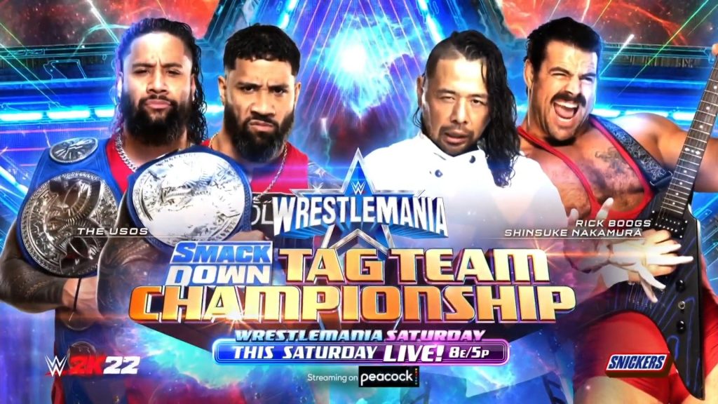 Smackdown Tag Team Championships: The Usos (c) vs. Rick Boogs & Shinsuke Nakamura