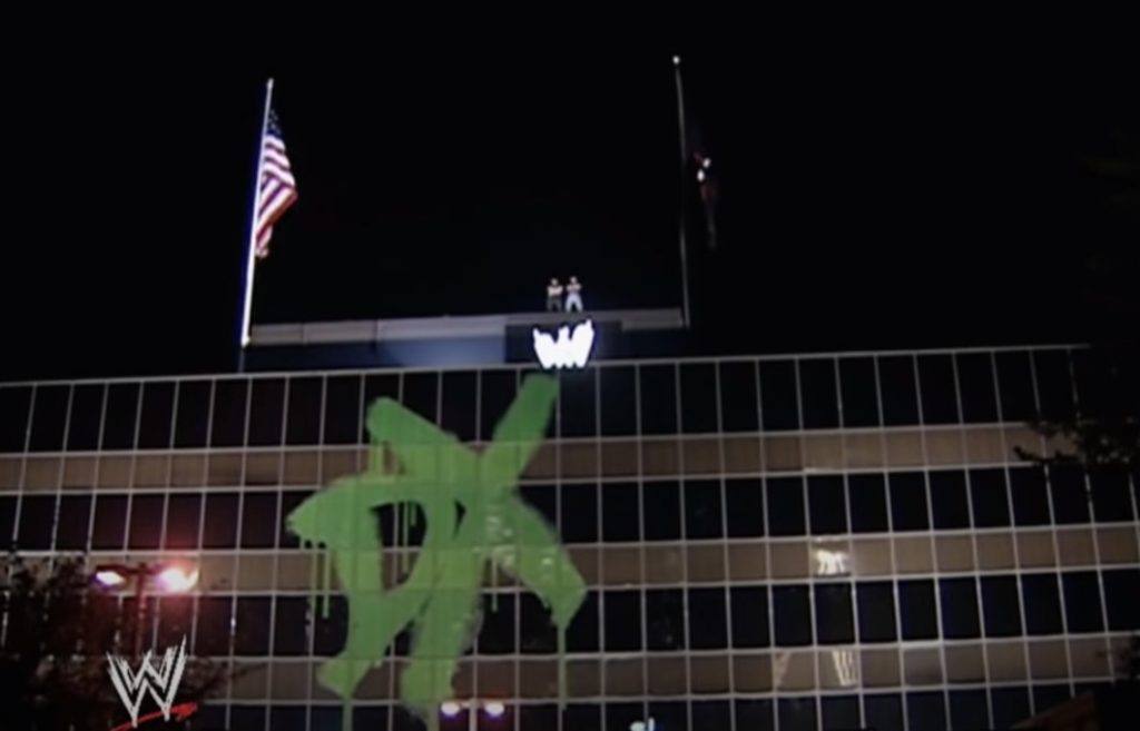 On the August 21, 2006 episode of Raw, D-Generation X vandalized WWE’s main office (known as Titan Towers) with the infamous green DX logo appearing on the building.