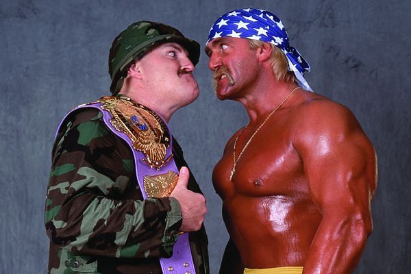 Sgt Slaughter has recalled The Ultimate Warrior causing Hulk Hogan to get mad after not bringing the traditional black WWF Title belt with him to a show and leaving Hogan left holding a purple version instead.