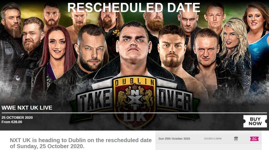 There is currently an NXT Takeover Dublin event scheduled for Sunday, October 25 and with NXT UK tapings continuing very soon, it might happen, but it definitely might not be in Dublin as scheduled. Here’s an image from the arena’s website.