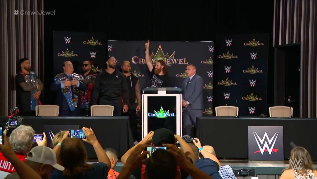 Michael Cole hosted the press conference saying that he was calling Crown Jewel on November 5th from Riyadh, Saudi Arabia. Cole recapped what happened on Smackdown with Logan Paul calling out Roman Reigns. Cole introduced The Bloodline group supporting Roman Reigns. Cole mentioned 747 days for the Universal Championship reign of Roman Reigns, which also includes the WWE TItle that he won at WrestleMania 38 earlier this year.