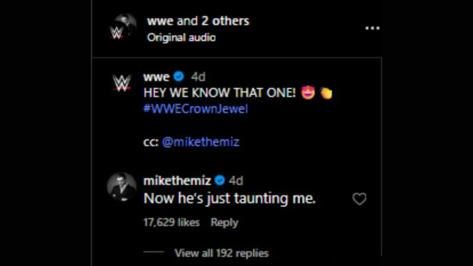 The Miz commented on WWE’s Instagram, saying, “Now he’s just taunting me,” expressing frustration at being overlooked for a match with Cena despite his history with him. Check out a screenshot of his comment below.