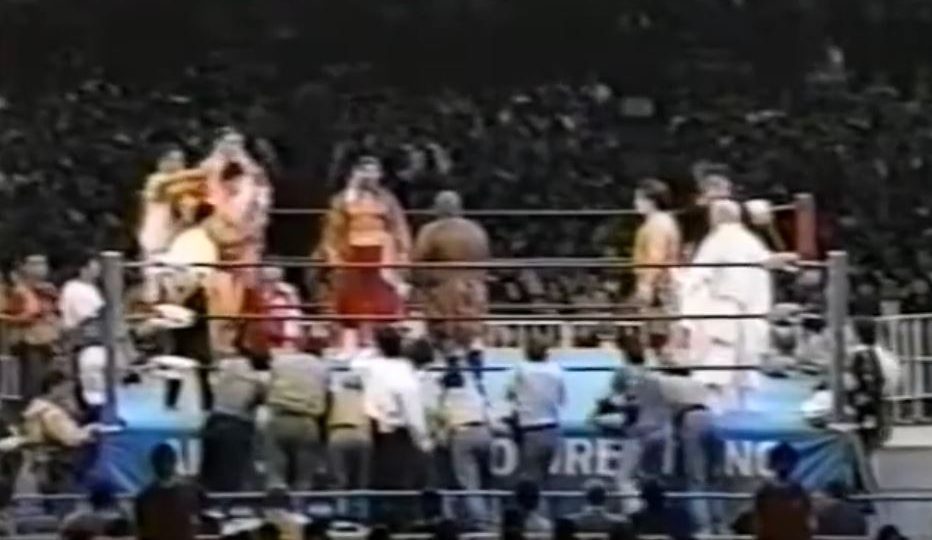 Review: This was the most average tag wrestling match imaginable in terms of structure. You had two massive outsider heels isolating one opponent until the other one got the hot tag to clean house. Except that didn’t work since the Headhunters were a more functional unit (it also helped that it was damn near impossible to tell them apart). Things seemed to fall apart during Honda’s comeback and it became impossible to tell who was legal and who wasn’t. They just went with it I guess and tried to have an exciting finish. But the AJPW guys just couldn’t overcome the bigger, stronger, and more cohesive outsider duo. This was completely forgettable yet at the same time not really bad in any major way. This didn’t come across like a big interpromotional war worthy of AJPW’s first Tokyo Dome Show. It felt like it belonged on a regular TV show or even a house show. It lacked heat and tension and the finish got a middling reaction at best. But at least seeing a 300-pound Headhunter to a perfect moonsault was interesting.