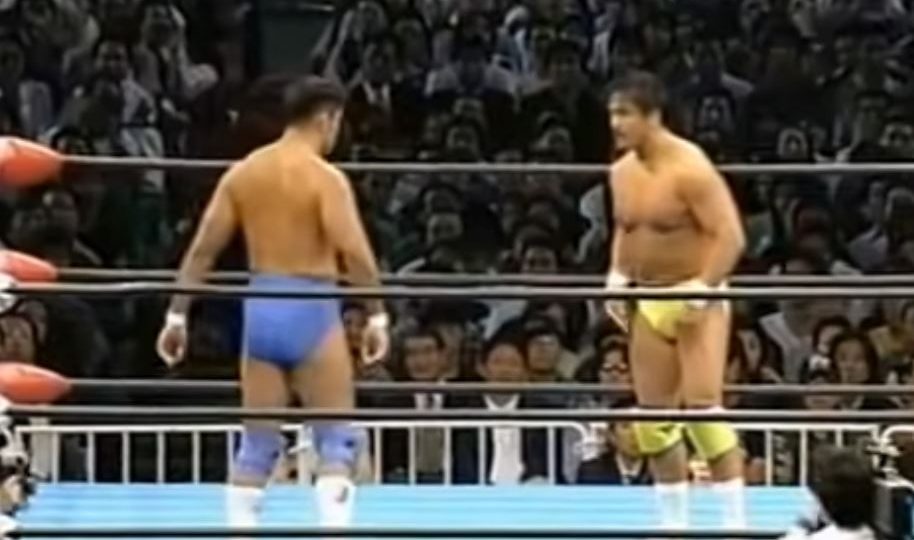 Background: This is another match involving outsiders, but this time it’s all outsiders. Gedo and Jado were a successful tag team in WAR, Mexico, and across the Japanese independent scene. And years later, Gedo would become famous for booking New Japan during its most recent peak/golden age from about 2012 to 2020. Meanwhile, Wolf Hawkfield (also known as [The] Lacrosse and Jim Steele) was one of many Americans brought over to All Japan to work their midcard and big tag matches. As for Johnny Smith, he was a British wrestler presented as the storyline brother of ‘British Bulldog’ Davey Boy Smith.