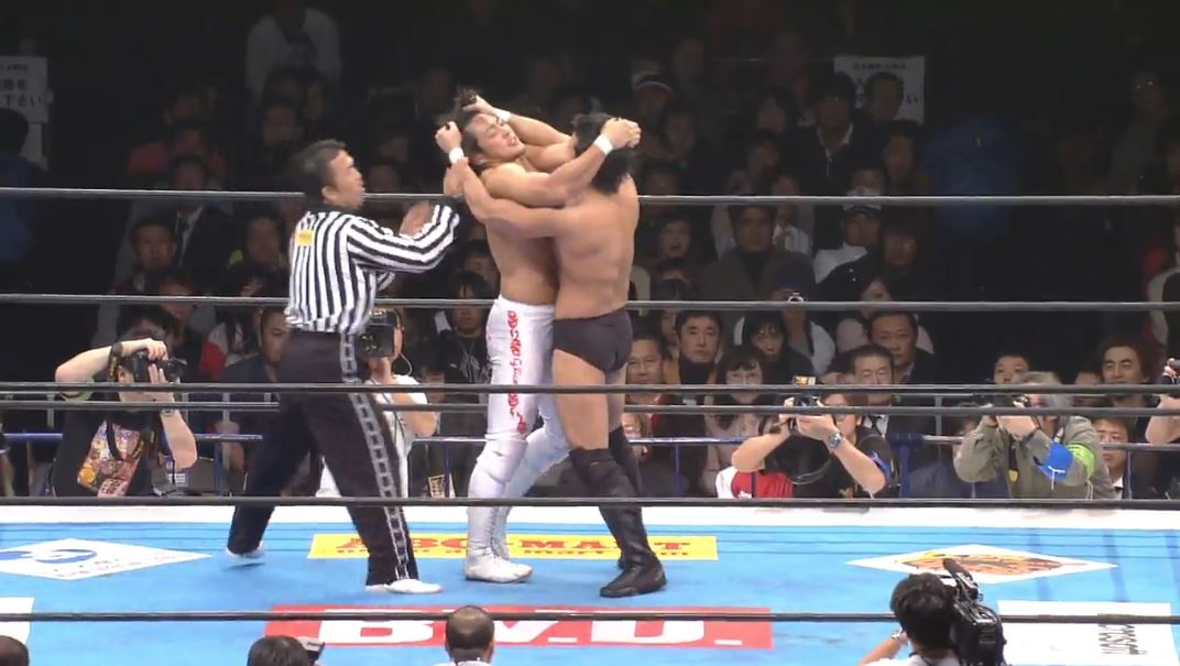 That’s because that match-up did occur, fourteen years earlier, at one of New Japan’s annual January Tokyo Dome Shows. Before it was called ‘Wrestle Kingdom’, that show went by different names. In 2006, it was called ‘Toukon Shidou’. I don’t know what that means, but I’m guessing it means something related to ‘fight’ because NJPW have used the word ‘toukon’ a few times before.