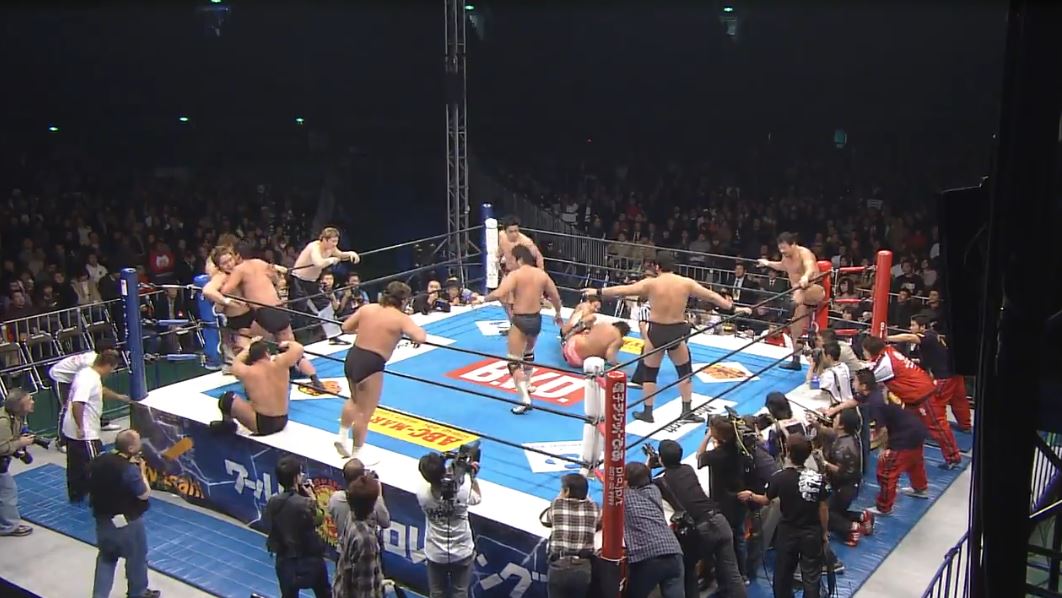 This show was absolutely horrible, just the absolute nadir of New Japan’s January 4 Dome show history. The 31,000 or so people in the Tokyo Dome were straight up robbed of their money. The matches were filled with plodding action, chaotic brawls, and ineffective refereeing. I’m amazed none of the matches ended in disqualification and that the refs were ok with being thrown around like useless props. The only worthwhile match on the card was Tanahashi/Shibata, and that wasn’t as good as the matches they’d have later down the road. Everything else here ranged from disappointing (Otani/Kanemoto, Chono/Tenzan/Omori/Koshinaka, Lesnar/Nakamura), to nonsensical (the six- and twelve-man tag matches) to the downright unwatchable (Bernard/Nakanishi, Akebono/Yoshie/Saito/BSM). It was as if everyone aside from Tanahashi and Shibata decided to phone it in and just collect their paycheck.