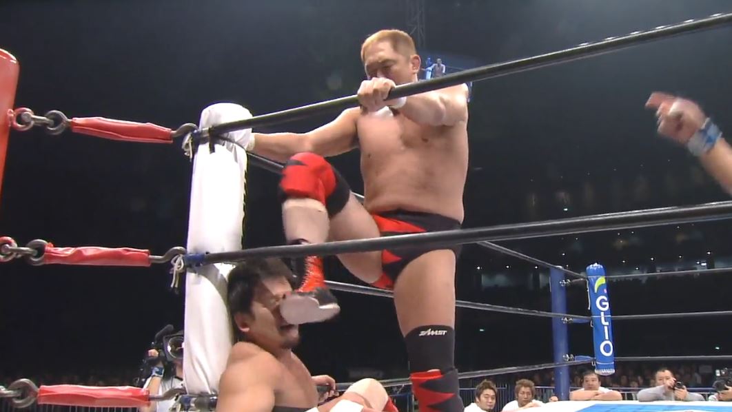 Murakami lands more stiff shots as Nagata gets up, then Nagata catches his leg and lands a running kneelift in the corner. Nagata drops him with a big boot and applies his Nagata Lock II armbar. This goes on for quite a bit and the referee has to basically force Nagata to let go, even after Murakami reaches the ropes. Nagata gets some revenge for earlier with brutal kicks of his own that send Murakami out of the ring. At ringside, Nagata lands multiple knee strikes to Murakami’s head then gets into a brief tussle with some people whom I think are Murakami’s crew. Nagata tosses Murakami back into the ring and Murakami’s bleeding hard. Nagata lands a flurry of head-butts and knee strikes to Murakami’s head. Running yakuza kick and a brainbuster from Nagata. Followed by another punt to the head. Nagata pins but Murakami gets his foot on the rope. Murakami makes a desperate attempt at a comeback with punches but Nagata shuts him down with a Backdrop suplex. A second backdrop suplex from Nagata gets him the win after thirteen minutes.