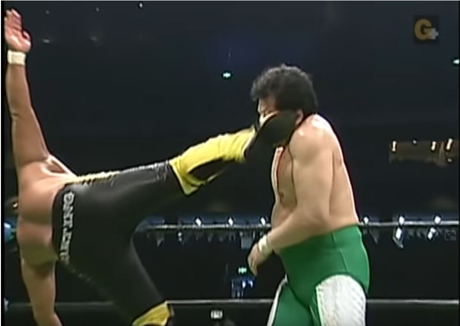 Background: Kanemaru was the ace of NOAH’s junior heavyweight division. He won the junior heavyweight title a year earlier at NOAH’s terrific Departure show by defeating Jushin ‘Thunder’ Liger. He has managed to keep his title up to this point; but his challenger is KENTA, the notoriously-stiff kickboxer who kicks people with the collective force of an entire soccer team.