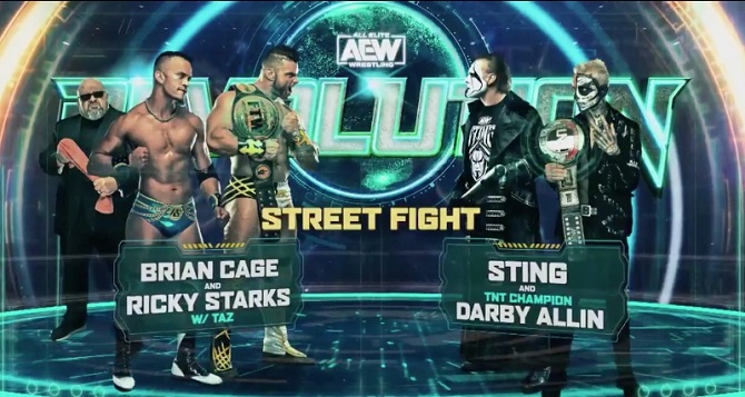 Taz complained about Sting attacking Ricky Starks and Allin wrapped his belt around Cage’s legs. Taz said he grew up in the streets. Taz said that these men are street fighters. Ricky Starks claimed they couldn’t see them in the streets. Taz said if you want to go hard and go nasty, the ball is in your court and asked “what you got?” Allin did a promo saying that if you want to take it to the streets, be careful what you wish for because it just might happen.