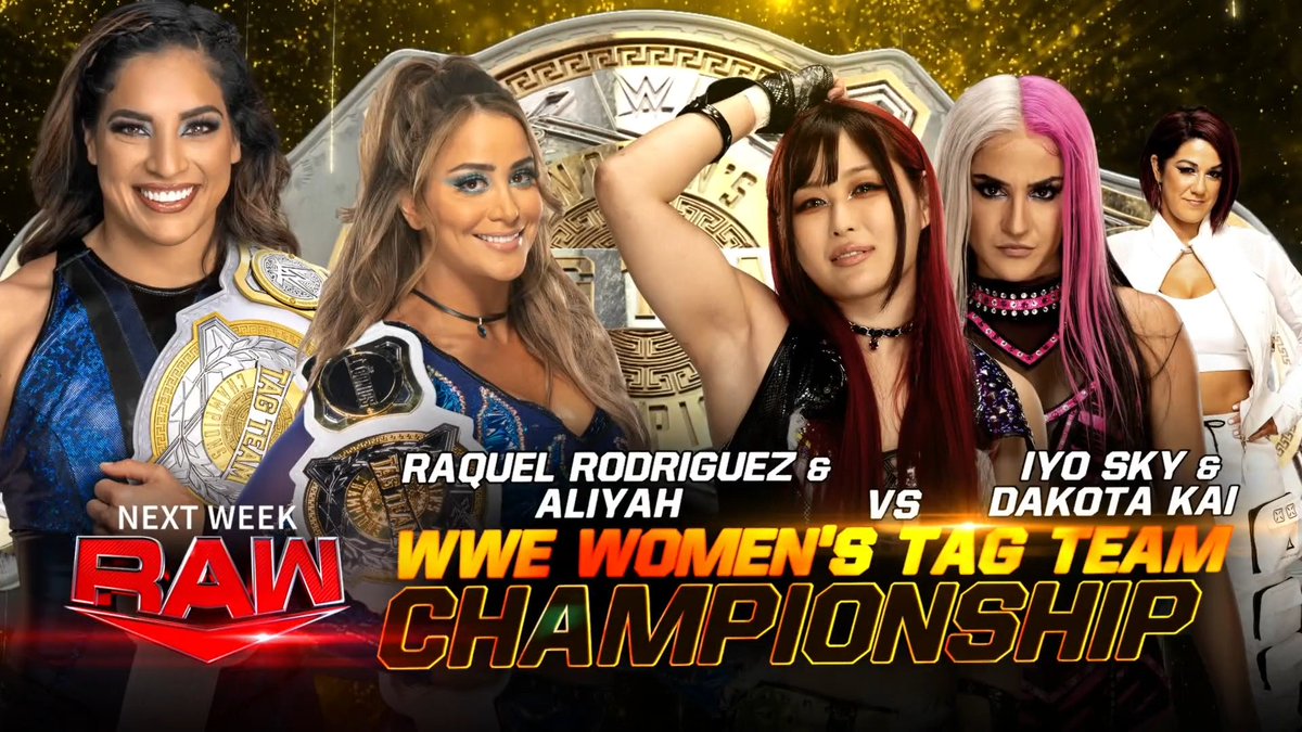 * Women’s Tag Team Titles: Raquel Rodriguez & Aliyah vs. IYO SKY & Dakota Kai.