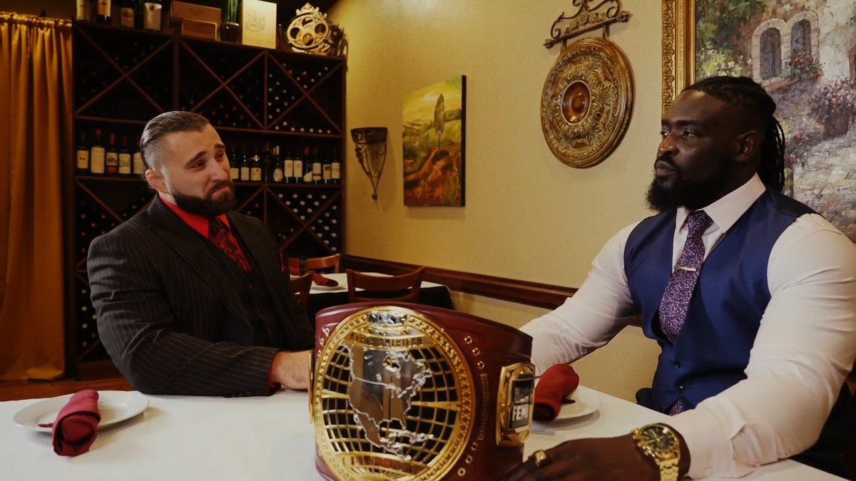 Tony D’Angelo was shown walking backstage in a restaurant where he was told somebody had taken his room. Tony walked into a restaurant to see that Oba Femi was seated there with the NXT North American Title. Tony said that Femi had a lot of balls being in this room. Femi said that Tony is the Don of NXT who is a powerful man. Femi said that he’s the Ruler of NXT so he doesn’t need his acceptance. Tony mentioned Femi interrupting him a few times and now Femi is in Tony’s place to scare these people. Tony said they could talk this out like men or…Femi stood up. Femi said he’ll wait until Sunday. Tony said that it was inevitable – the Don vs. the Ruler. Tony said he’ll show everybody that Femi is mortal. Femi said many have tried, but none succeeded and Tony will be no different. Femi left.