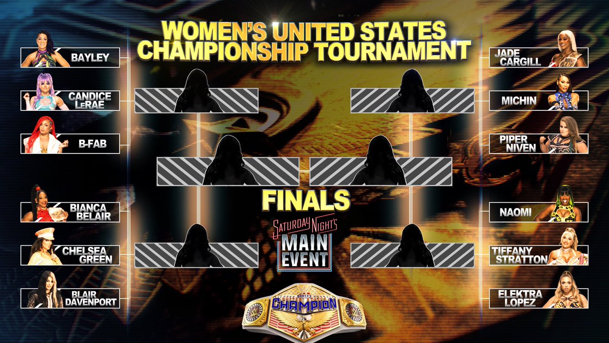Here are the tournament graphics for the Women’s US Title. The finals are at Saturday Night’s Main Event on December 14th.