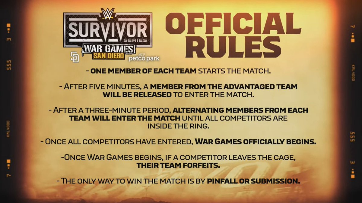 The Women’s WarGames match was leading off as expected. Here are the WarGames rules as shown on the screen.