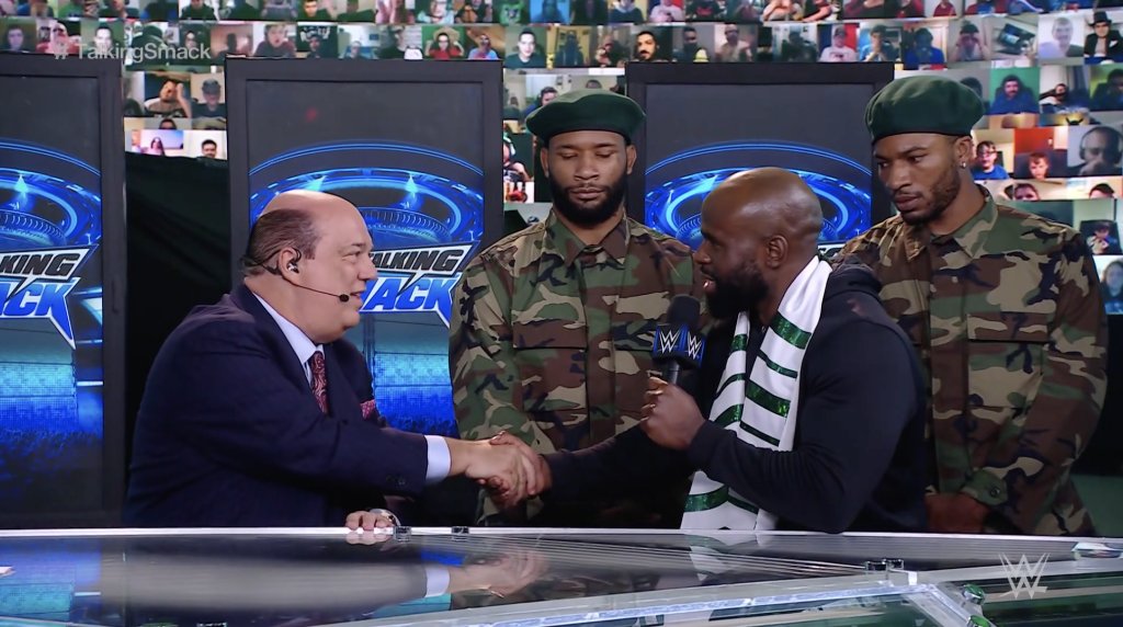 The next guest is Apollo Crews with his Nigerian nightguards. Heyman asks Apollo if it ok to shake his hand, intimidated by the presence of the guards. Kayla says she is impressed by what Apollo has done lately and introducing his real self. Apollo says this is who he has been. He hated that he had to hide himself and his heritage but now it is great to be himself. Apollo says while Big E should stay home, he wants foe to return because has something that he wants in the Intercontinental Championship. He says his ancestors are great warriors and will continue the heritage by taking the Intercontinental Championship. Kayla says Apollo had failed in the past trying to capture the title however, Apollo says he never saw it as a failure. Apollo believes he has learned from it to where Big E now wants to come back and face himself after what he did to him. Heyman says he is impressed by Apollo both physically and strategically. Apollo says he promises that he will be waiting for Big E and will show the world how great he really is. Apollo shakes Heyman’s hand before leaving. Kayla gives credit to Heyman for his comments which seem to light a fire in Apollo. Heyman says it is not a popularity contest but longevity and he has been correct for so many years. Heyman believes Apollo Crews is a main event talent, before ending with it not being a prediction but a spoiler.